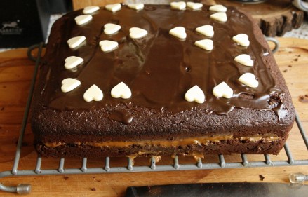 Ciasto czarne jest wyjątkowo eleganckie, tak ocenili je moi goście. A przyrządza się je bardzo łatwo. To znakomity wypiek dla tych, którzy się pieczenia uczą lub nie pieką często. Jest przełożone kajmakiem, ale można zamiast niego można wziąć jakąś kwaskowatą marmoladę (np. morelową lub pomarańczową) lub roztarty z cukrem krem z sera mascarpone.