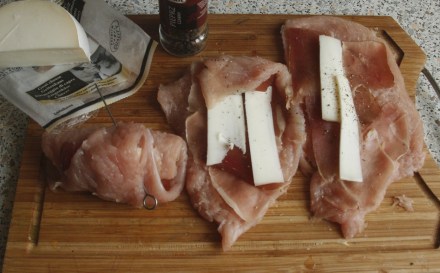 Tradycyjnie obowiązuje się je bawełnianą nitką, ale można i ostrożnie spiąć szpilką do zrazów. Zawartość serowa nie powinna wypłynąć podczas obsmażania. Kotlety można opanierować (w bułce tartej, albo mące, albo jajku rozkłóconym z tartym serem) albo i nie (kalorie!). Nawet bez panierki trzeba je obsmażyć, aby stały się złote. A potem zalać białym winem i podddusić. Voilà! Gotowe.