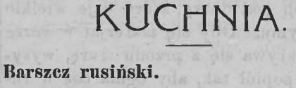 A może chcemy nieco prostszej odmianę barszczu? „Dobra Gospodyni” tak ją gotowała w roku 1904: