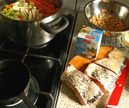 kostka bulionu z ryby lub saszetka rybnego court boullion