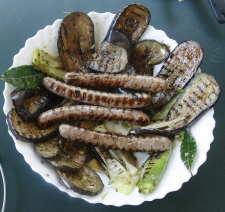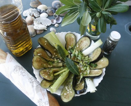 Zastanawiałam się, czy nie włączyć dzisiejszego wpisu do cyklu „Więcej warzyw”. Ale jednak zwyciężyła chęć wspominania niedawno minionego pobytu na campingu w Cap d’Agde. A więc jeszcze jedno danie wakacyjne. Można je przygotować na grillu (są teraz do kupienia wygodne, jednorazowe!) albo na patelni grillowej, jak zrobiłam ja. Podstawę stanowią bakłażany. Te „gruszki miłosne” są już na tyle znane, że nie ma co ich szerzej opisywać. Uczyniłam to zresztą w blogu wcześniej. Po prostu więc kupmy zgrabne nie wyrośnięte bakłażany (dawniej nazywane z francuska oberżynami) i przyrządźmy je. Będziemy mieli znakomity letni obiad. A podobno przed nami kilka dni upałów. Bakłażany podane z zimnym jogurtem lub schłodzonym winem będą poezją smaku. Podkreślą urok tej pory roku, u nas tak krótkiej.