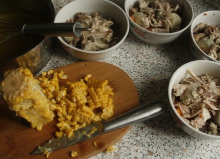 Z kolby gotowanej kukurydzy zestrugać ziarna.