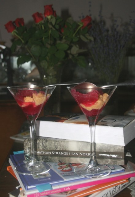 A teraz lody z książeczki Shelly Kaldunski; opisuję je też własnymi słowami, zachowując proporcje. To także lody owocowe. Są szczególnie odświeżające. W sam raz na letni wieczór po upalnym dniu.