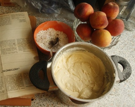Upiekłam ciasto brzoskwiniowe z jeszcze innego przepisu. Otóż znalazłam w starej teczce z różnymi wycinkami ten, którego bezskutecznie szukałam od lat. Pochodzi z miesięcznika „Ty i ja”, który ukazywał się w latach 1960–1973. Było to znakomite pismo, na wysokim poziomie graficznym (makietę stworzył Roman Cieślewicz, z pismem współpracowali Henryk Tomaszewski, Waldemar Świerzy, Julian Pałka). Było to pismo dla inteligencji pracującej, jak się wtedy mówiło, choć sam termin spotkałam i przed wojną, m.in. w felietonach Pani Elżbiety. Inteligentne, co się zowie. Przedstawiało trendy swoich czasów, czerpiąc wiele z wzorów zagranicznych (moda, muzyka, literatura), ale i najlepszych krajowych (wzornictwo, plastyka, film). Bogaty dział kulinarny prowadził w nim Tadeusz Żakiej. Tak, tak, jako Maria Lemnis i Henryk Vitry. To wtedy stał się czołowym kulinarnym dziennikarzem PRL-u. O niezwykłej kulturze, śmiało można powiedzieć – przedwojennej, i wysokiej erudycji. Propagował gastronomiczne nowinki z kuchni świata, ale traktował wiele i o historycznej kuchni polskiej. Łączył tradycję z nowoczesnością. Jego informacje i dzisiaj przytaczam z przyjemnością. I, myślę, że z pożytkiem.