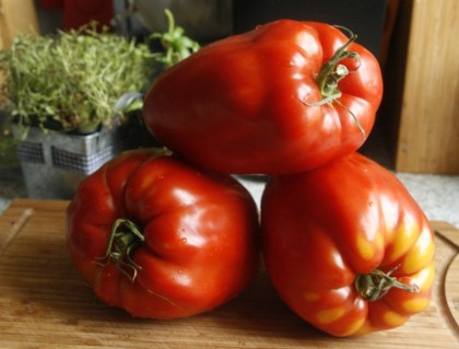 Na bazarach wabią oczy warzywa. Zwłaszcza te czerwone: pomidory i papryki. Są ich różne gatunki. Mnie skusiły gruntowe pomidory nazywane bawolimi sercami (Oxheart). Nazwa z racji rozmiaru i kształtu. Są mięsiste, znakomite w smaku, pyszne i na surowo, w sałatkach, i w potrawach gotowanych.