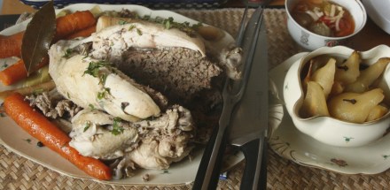 Kura lub kurczak gotowane z nadzieniem są specjalnością kuchni francuskiej. Ale może i nam zasmakują? Staranne wykonanie takiego rosołu napełni dom pięknym zapachem i rodzinnym ciepłem. Może nawet uda się do stołu zagonić wszystkich domowników.
