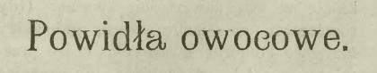 można robić z takich owoców jak czernice (czarne jagody), łochynie (jagody z białem mięsem), poziomki, truskawki, maliny i t. d. Owoce te należy przetrzeć przez sita jeszcze przed gotowaniem, aby ziarnka i skórki dokładnie usunąć. Po przetasowaniu gotuje się i zgęszcza podobnie jak śliwki. Na funt jagodowych owoców dodawać należy l/2 do 1 funta cukru. Owoce jagodowe, szczególniej poziomki, mają ziarnka gorzkie i gotowane wraz z niemi stają się niesmaczne. Owoce jagodowe dużo posiadają soku i dlatego muszą być długo parowane, aby nabrały konsystencji dobrych powideł. Ilość cukru dodawanego zależna jest od kwasu w owocach, tak np. czereśnie wystarcza osłodzić 1/4 funtem na 1 funt owoców, gdy tymczasem wiśnie najmniej 1/ 2 funtem.