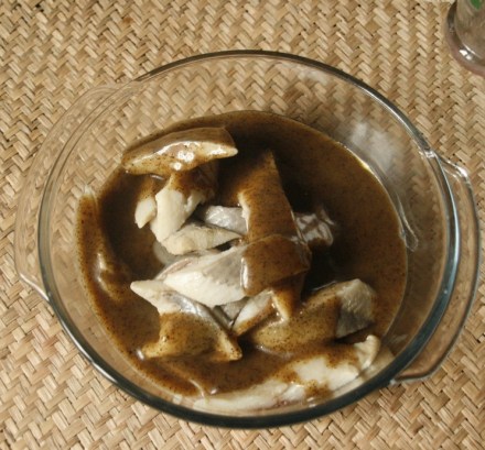 Do przyrządzenia śledzia skłoniła mnie niedawna miła kolacyjka, podczas której usłyszałam o fantastycznym szwedzkim śledziu z… kawą (Magdo, dziękuję!). Chodzi ten przepis po Sieci, a jego autorem jest kucharz ambasadora Szwecji w Polsce. Nawiązał do tradycji kuchni skandynawskiej, które lubi łączyć słone ryby – anchois czy właśnie śledzie – ze smakiem słodkim. Połączenie intrygujące, bardzo oryginalne w smaku. Oddam je własnymi słowami, z drobnymi zmianami, ale istota tego przepisu nie jest mojego autorstwa. Oryginalny pomysł autora zakłada, że najpierw śledzie się marynuje w occie. Pominęłam ten etap. Zalewą z kawą potraktowałam wspomniane matjesy.