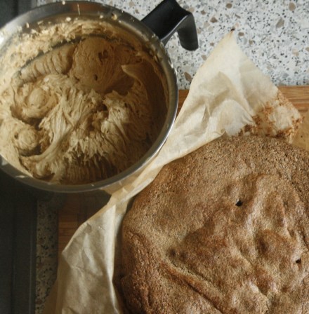 Do tortu jednak trzeba wziąć mak sypki, z torebki. Przypominam: jest już roztarty. Torebka z nim zawiera 200 g. W przepisie było 250 g maku, wzięłam o te 50 g mniej. Bez szkody dla jakości ciasta. Podaję więc taką ilość maku, jaką zastosowałam. Przepis podaje także bardzo bogaty maślany krem: z 2 kostek masła, 6 jaj, 3–4 łyżeczek kawy rozpuszczalnej. Krem przyrządziłam też inny: korzystając z przepisu w klasycznej „Kuchni polskiej”. Nieco „uboższy”.