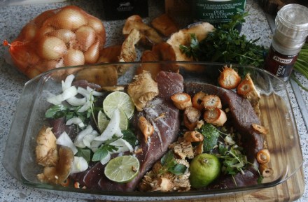 Płaty tuńczyka bywają nawet nazywane polędwicą, tą prawdziwą, wołową. Nic dziwnego. Z wyglądu ją przypominają. I można je także przyrządzać bez większego zachodu. Błyskawicznie. Zwykle bez ceregieli tak się właśnie z nimi obchodzę. Smaruję oliwą, jakimiś przyprawami lub tylko pieprzem i wrzucam na mocno rozgrzaną patelnię grillową. Po kilku minutach są gotowe, przy czym nie mogą być usmażone za mocno. Wtedy mają konsystencję trocin. Mogą być natomiast mniej czy bardziej różowe w środku. Wtedy są soczyste i miękkie.