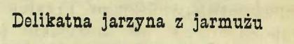 Jarmuż jada się zwykle zimową porą, bo wtedy tylko jest dobry, gdy przemarznie. Sito surowego jarmużu obrać ze wszystkich gałązek, wypłukać starannie, wrzucić w duży garnek do połowy napełniony wrzącą wodą i dopóty gotować dopóki zupełnie nie zmięknie. Mięki [!] wyjąć na durszlak aby osiąknął, posiekać jaknajdrobniej [!], a jeszcze lepiej przetrzeć przez durszlak i złożyć w rondel, w którym zasmażyć czubatą łyżkę masła z łyżką mąki, którą to zaprawkę rozebrać szklanką mleka. Jarzynę tę osolić i ocukrzyć do smaku, gdyby była zagęsta [!] dolać jeszcze potrzebną ilość mleka. Podać na stół z omletem lub jajami sadzonemi.
