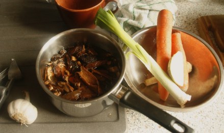 Ugotować smak z różnej włoszczyzny, 1 cebuli i kilku grzybów suszonych, zależnie od ilości osób. […] Na grzybową bez śmietany trzeba, by smak był esencjonalniejszy, a więc wziąć więcej włoszczyzny, 2 cebule i więcej grzybów […]. Smak gotować pod pokrywką, aby nie zwietrzał. Na pól godziny przed podaniem, smak przecedzić, posolić.