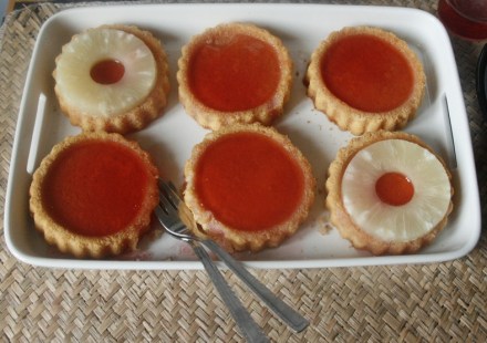 Galaretkę sporządzić zgodnie z przepisem na opakowaniu, biorąc trochę mniej wody (3–4 łyżki) niż podano. Odstawić ją, aby wystygła i zaczęła robić się gęsta, czyli z płynu zmieniła się w galaretę. Wtedy nakładać ją łyżką do tarteletek. Można je wypełnić owocami, np. jak na zdjęciu – włożyć plaster ananasa z puszki. Ale mogą to być truskawki i inne drobne owoce jagodowe, gruszki, morele, brzoskwinie lub owoce egzotyczne z puszki. Tarteletki odstawić, aby galaretka zastygła.