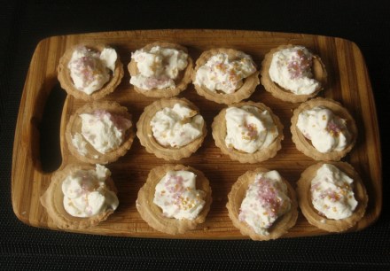 Aby sporządzić taki deser, na liście zakupów trzeba umieścić gotowe ciasteczka: tarteletki (takie większe babeczki z ciasta kruchego lub biszkoptowego) lub babeczki słodkie (na to trzeba zwrócić uwagę, bo są też słone!). Są sprzedawane w pudełkach, można je znaleźć na półkach z gotowymi ciastami lub pieczywem.