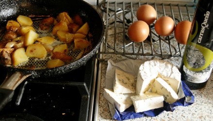Prosty lunch do zjedzenia samotnie lub w miłym towarzystwie. Przygotuje go z powodzeniem nawet osoba rzadko w kuchni bywająca. Gdy podamy do niego sałatę, będzie stanowił wartościowy posiłek, który wystarczy aż do wieczora. Łączy jajka z serem i z… ziemniakami, które pozostały po wczorajszym obiedzie. Gdy zostaną nawet dwa ugotowane ziemniaki, nie wyrzucajmy ich. Nawet takie skromne resztki warto spożytkować. Smażone z jajkami nazywają się omletem wiejskim lub chłopskim. Można go pod koniec smażenia posypać startym serem (zwłaszcza gdy także jest jakąś przechowywaną w lodówce nieco wyschniętą resztką…). Ale jeżeli mamy ser pleśniowy – czeka nas posiłek królewski. Uwaga, nie dla odchudzających się. Taki omlet jest dość kaloryczny. Zrównoważą go: jazda na rowerze, solidne domowe porządki lub choćby szybki spacer. Albo jakieś inne ćwiczenia fizyczne (pokażę je pod koniec dzisiejszego wpisu). Najpierw: nasz kaloryczny posiłek w połowie dnia. Nigdy kolacja. No, chyba że po niej przed snem odbędziemy wieczorną przebieżkę.