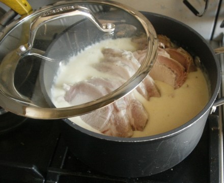 Proponuję sos chrzanowy podać do niedzielnej pieczeni lub klasycznej, z rosołu, sztuki mięsa. U nas były to plastry peklowanego ugotowanego schabu (sposób peklowania podałam kilka wpisów temu). Mięso trzeba cienko pokroić, najlepiej trzymając wcześniej w lodówce.