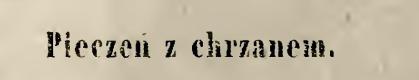 Pieczeń wołową nasolić, włożyć w rądel, nalać trochę wina, dodać pieprzu, bobkowych liści i tak dusić. Jak będzie gotowa, ułożyć na półmisek, poprzekrawać w zrazy i przekładać utartym chrzanem dobrze wymięszanym z masłem, włożyć to wszystko w rądel, wlać sos przez sito i na węglach trochę poddusić.