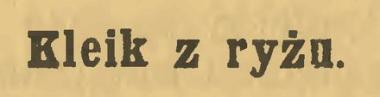 Wybrać najpiękniejszy ryż przezroczysty, namoczyć go w wodzie na noc, a nazajutrz gotować, biorąc na trzy łyżki ryżu kwartę wody; skoro woda nabierze mlecznego koloru, włożyć łyżeczkę niesolonego masła i gotować jeszcze przez chwilę, poczem przecedzić przez włosiane sitko, osolić lub ocukrzyć i podać choremu.