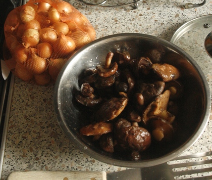Na razie dla miłych gości z przyjemnością gotowałam brązowe ragoût z grzybami. Mrożonymi. Okazało się potrawą pełną smaku lasu. Kto go lubi, będzie zachwycony.