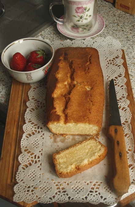 Ciasto wykładamy na kratkę kuchenną. Kroimy, gdy wystygnie. Smakuje świetnie z dodatkiem truskawek. Bo przecież na nie pora.