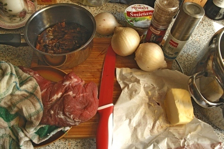 Na bazarze jest znacznie tańsza niż w sklepie. Za młodą płaciliśmy 30 zł za kilogram. Nie jest to mięso tanie, ale warte swojej ceny. Przechowujemy je w lodówce, ciasno zwinięte w czystą ściereczkę lniana lub bawełnianą. Po oczyszczeniu z błonek (nie wyrzucajmy ich, odłóżmy do zup lub gotowanej kapusty), będziemy mieli lity kawałek nietłustego mięsa, które przyrządza się w mig. Tym razem nie nastawiłam się na befsztyk, ale na sporządzenie staroświeckich zrazów. To dobrze znane w kuchni polskiej zrazy nelsońskie.