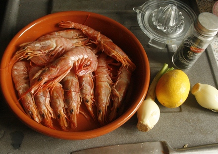 Zamiast raków na jeden z pierwszych letnich dni przygotowałam jednak krewetki. Cóż, pocieszajmy się, czym mamy. Przez całe moje dorosłe życie w PRL-u ani raków, ani krewetek w żadnym sklepie nie widziałam na oczy. Raki jadłam, ale odławiane prywatnie. A krewetki? Kiedyś (wczesny Gierek) takie małe, grenlandzkie, z puszki. Innych nie było. Odnotuję, że w „Delikatesach” można było kupić znakomite puszki z krabami, rosyjskiej firmy Snatka, cyrylicą wypisaną jako CHATKA (co tak się potocznie czytało). Kraby podobne były w smaku do słodkawych raków.