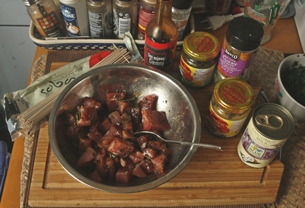 Na filmową kolację zaproponuję przyrządzić coś lekkiego, szybkiego, no i na ostro. Tytuł zobowiązuje! Jak lekkie to ryba. Na przykład tuńczyk. Może być rybą milionerów (wprawdzie w filmie jest mowa o sardynkach w puszkach…), zwykle jest bardzo drogi. Ale cicho, sza, nie każdy musi widzieć, że 30 dag kupiliśmy w jednym z hipermarketów za 9 złotych… Jak na ostro, to coś z kuchni azjatyckiej. Będzie to wariacja na tematy tajskie. Propozycja autorska. Jak szybko, to zobaczymy. Góra dwadzieścia minut.