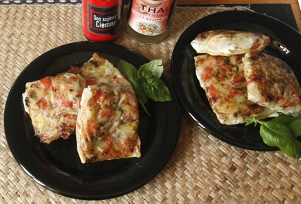 Dodatkiem do tych letnich pakiecików była u nas zielona fryzowana sałata z ogórkami i listkami bazylii, doprawiona olejem ryżowym (na nim także smażyłam naleśniki; ma wysoką tzw. temperaturę dymienia) i ryżowym octem, a także solą i pieprzem.