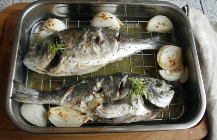 Miętusa ze zdjęcia (królewskiego!) kupię następnym razem. Na razie wybrałam świeże dorady z Adriatyku. Jako wspomnienie wakacji w Chorwacji. Te ryby, popularne także w kuchni śródziemnomorskiej, są wygodne do przyrządzania. Można je grillować, co podaję pod rozwagę amatorom nieśmiertelnej karkówki i kiełbasek. A w domowych warunkach, gdy grilla brak, można je upiec. Szybko i bez zbytniego ambarasu.