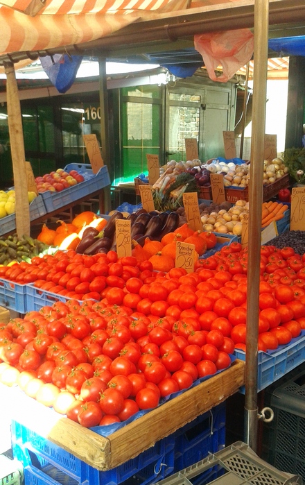 Sierpień nas pogodowo nie rozpieszcza. Ale nie jest też najgorszy. Zwłaszcza dla tych, co jak my spędzają lato w mieście. Upałów nie ma, deszcze się miarkują, pogoda idealna do spacerów. Także tych na bazar. A tam bogactwo owoców, warzyw, mięs i ryb. Tak jest na tym „moim” bazarze obok Hali Mirowskiej. Samo chodzenie wśród coraz piękniej ułożonych produktów, rozmowy z coraz milszymi sprzedającymi, no i kupowanie –– to czysta przyjemność.