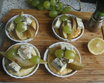 Tarteletki z serem, gruszkami i winogronami po mojemu