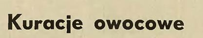 (…) Koniec lata i początek .jesieni, to sezon owocowy w całej pełni, który daje nam możność przeprowadzenia najmilszych kuracji, dla oczyszczenia organizmu oraz żołądka, który jest regulatorem naszego życia, zarówno fizycznego jak duchowego. Do kuracji owocowych używa się winogron, pomarańcz, porzeczek i śliwek.