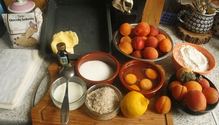 Na szczęście w domu chorych nie mam! Z pięknych moreli, które warto kupować, póki jeszcze są, upiekłam ciekawe ciasto. Nadaje się do podania na przedjesienny podwieczorek. Po długim spacerze lub zabawach na coraz chłodniejszym powietrzu będzie bardzo smakowało, za co ręczę. A nie jest skomplikowane i da się przyrządzić na poczekaniu. Przepis znalazłam w moim starym zeszycie z kulinariami z lat osiemdziesiątych.