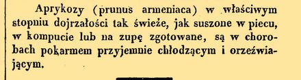 Na zakończenie będzie przetwór z moreli do zachowania na zimę. Takie stareńkie konfitury przyrządzały białymi rączkami, a może raczej spracowanymi rękami kucharek i dziewek kuchennych, panie domu przed sto dziewięćdziesięcioma laty. Tak, w roku 1826. A czarowny przepis na konfitury nieoczekiwanie trafił na łamy „Kuriera Warszawskiego”. Podpisał go (Jzys.), autor kilku notek parakulinarnych i wręcz kulinarnych z tego czasu.