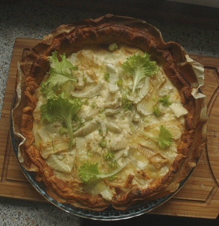 Tartę przed podaniem przybrać nacią kopru włoskiego i listkami młodej sałaty.