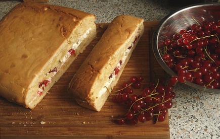 Pierwszy biszkopt, jasny, piekłam latem, gdy były porzeczki. Po upieczeniu przekroiłam go i przełożyłam bitą śmietaną z porzeczkami. Myślę, że teraz można do niej dodać np. ćwiartki winogron. A może jakieś egzotyczne owoce z puszki? To ciasto, nawet samo, jest smaczne, eleganckie i nie wstyd je podać do niedzielnej popołudniowej herbaty, na którą zaprosiliśmy ulubioną ciocię czy przyjaciół.
