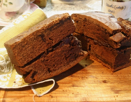 Piekłam dwa razy dłużej niż podaje przepis, bo ciasto wciąż było surowe. Użyłam dżemu śliwkowego. Dodałam mniej cukru. Poza tym wszystko, jak w przepisie. Ciemne ciasto ma charakterek, jest wilgotne i długo zachowuje świeżość. Smakuje troszkę jak piernik. Przełożyłam je dość leciwymi, ale wciąż dobrymi powidłami śliwkowymi smażonymi z czekoladą, które nieoczekiwanie znalazłam w czeluściach szafy.