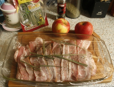 cienkie plasterki wędzonego boczku
