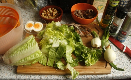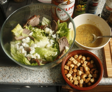 Sałatka z sałaty rzymskiej i gęsich piersi po mojemu