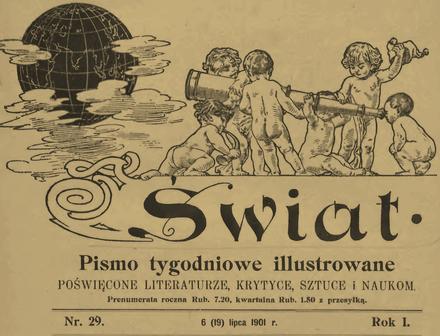 Nie był to ten najbardziej znany „Świat”, od roku 1906 wychodzący pod kierownictwem Stefana Krzywoszewskiego. Ten wydawał w Łodzi Alfred Zoner, pochodzący z tamtejszej rodziny znanych drukarzy i wydawców. Niestety, pismo ukazywało się tylko przez rok. Miało ambicje za wysokie widocznie dla łódzkich czytelników, a i pozałódzkich nie udało się pozyskać. Szkoda, bo redagowane było bardzo inteligentnie.