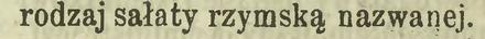 Dziwna to rzecz jak mało u nas upowszechniony jest rodzaj sałaty rzymską nazwanej. Jest to jednak jedna z najsmaczniejszych i najdelikatniejszych sałat, i zagranicą powszechnie na stoły ją podają. Na targach tutejszych [czyli krajowych] ogrodnicy z trudnością się jej pozbywali, a gospodynie utrzymywały, że jest zbyt twardą. Cały wszakże sekret na doprowadzeniu tej sałaty do należytej delikatności polega na tem, aby w chwili dorastania onejże, wierzchnie liście związać u góry łyczkiem, tak, iżby liście wewnętrzne zupełnie od promieni słońca osłonięte były. Tym sposobem cała wewnętrzna część główki utrzymuje się w kolorze biało żółtawym i nie tężeje od działania słońca. Dodać nam przytem należy, że zwyczaj powszechnie przyjęty przepłukiwania wszelkiego rodzaju sałaty, bardzo niekorzystnie na dobroć jej przy zaprawie wpływa. Do tego środka uciekać się należy w tym tylko razie, jeżeli główki bardzo są zanieczyszczone ziemią lub piaskiem, inaczej zaś ograniczać się trzeba na koniecznem tylko ocieraniu listków delikatną serwetką.