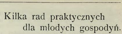 Młodym gosposiom, pragnącym swoje gospodarstwo prowadzić składnie i ładnie, a nie mającym w tem wielkiego doświadczenia, pragnęłabym niejedną podaną poniżej uwagą stać się pożyteczną. Nie wszystkie panienki, wychodzące za mąż, otoczone być mogą takim dobrobytem, aby do kuchni wtrącić się nie potrzebowały, a tem samem aby brak znajomości i dozoru w gospodarstwie kobiecem nie zrobił im przez to uszczerbku. Z temi zatem paniami pośpieszam podzielić się nabytem w dłuższem mojem życiu doświadczeniem.