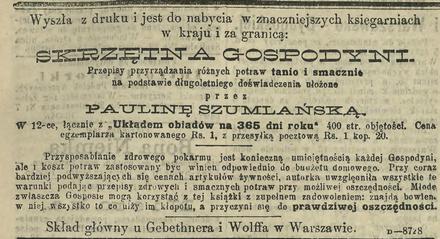 Na zakończenie garść bardzo pożytecznych uwag ogólnogospodarskich z roku 1910. Znalazłam je w „Tygodniku Mód i Powieści”, piśmie kobiecym ścigającym się o czytelników, a raczej czytelniczki, z „Bluszczem”. W nim przez lata o kulinariach pisała Lucyna Ćwierczakiewiczowa (a pod koniec życia znalazła się w… „Tygodniku”…), tu pochodzące z nieco młodszego pokolenia Marta Norkowska i Paulina Szumlańska. Ta ostatnia była znana jako autorka kilku książek kucharskich, z których pierwsza ukazała się w roku 1881. To był złoty czas dla naszego piśmiennictwa kulinarnego!