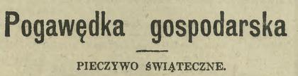 Na jakiś czas przed świętami otrzymuję listy i telefony czytelniczek ze skargami na zawody doznane, z prośbami o wskazówki i przepisy niezawodne i zapytaniami czy Koło studiów gospodarstwa domowego obecnie Związek pań domu, oddział warszawski, kursów pieczywa ciast znów nie urządzi. Oczywiście takie kursy, krótkie, parodniowe co roku są urządzane, tylko nie do mnie należy się zgłaszać, lecz bezpośrednio do sekretarjatu Związku.
