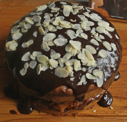 Pozostałą czekoladową polewą polać wierzch piernika. Posypać płatkami migdałów.