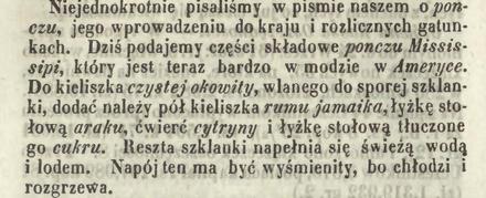 Gdy piernik już upieczony, może ktoś będzie się chciał rozgrzać. Zimą najlepiej naszych rodaków rozgrzewał poncz. Przepisów na poncze (czy nawet „pącze”, bo i tak pisano!), jak do wieku XIX, za wzorami angielskimi, nazywano wszelkie napoje rozgrzewające, było mnóstwo. Jeden z nich podał w innym kalendarzu ten ktoś podpisujący się I. O. Dwa lata po podaniu przepisu na piernik, a więc w roku 1838. W „Kalendarzu Janickiego”.
