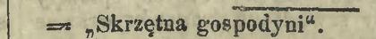 Dotychczasowe przewodniki układu obiadów i przyrządzania potraw, przygotowane dla szerszego koła gospodyń, nie zawsze mogły uczynić zadosyć potrzebie mniej zamożnych gospodarstw, dzisiejszemi okolicznościami wywołanej. Brak ten w naszej kulinarnej literaturze zapełniła książka wydana p. t. „Skrzętna gospodyni”, obejmująca układ i przepisy przyrządzania potraw, ze względu na dwa wyłuszczone wyżej warunki – oszczędności w wydatkach, oraz smacznego i zdrowego pożywienia.