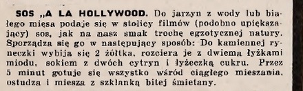 O ile z przepisu na sos można i dzisiaj skorzystać, o tyle z prezentowanych obok modeli kapeluszy – jeden, ten z lewej, opisany w dodatku jako sportowy! – na pewno już nie. Są nam tak odległe, jak czepki z wieku XIX. Warto je obejrzeć, by wiedzieć, jak dalece nasze ubiory odmaszerowały od czasów babć czy prababek. No i to, co się nosiło na głowie. A to co mamy w głowach? To inna sprawa.