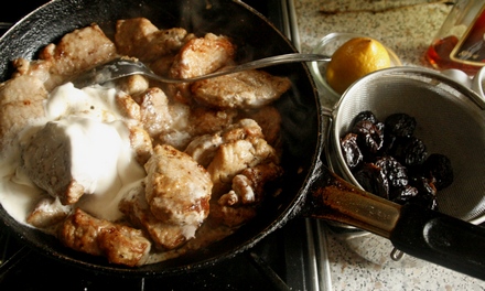 Tyle zupa, jej warzywny zapach bardzo udomawia atmosferę. Po niej na drugie danie proponuję potrawę mięsną, którą daje się przygotować w oka mgnieniu. Efekt znakomicie mięciutki i delikatny. To danie z kolei przyrządziłam na podstawie przepisu z książki pt. „Smaki Francji”. Nieco go zmieniłam. Uważam, że wiele w nim smaku polskiego – dzięki połączeniu wieprzowiny z suszonymi śliwkami.