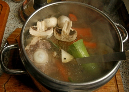 Podzielam zdanie o konieczności odtłuszczenia zupy. Dziś nie ma z tym wiele zachodu, po prostu trzeba przyrządzić ją dzień wcześniej. Częścią wywaru zalać odłożone mięso i warzywa, aby potem można było je odgrzać. Doprawioną zupę wstawić do lodówki, aby następnego dnia zdjąć warstwę tłuszczu. Przed zagrzaniem warto ponownie doprawić maderą lub innym winem mocnym smakowo, a także pieprzem lub ostrą papryką.